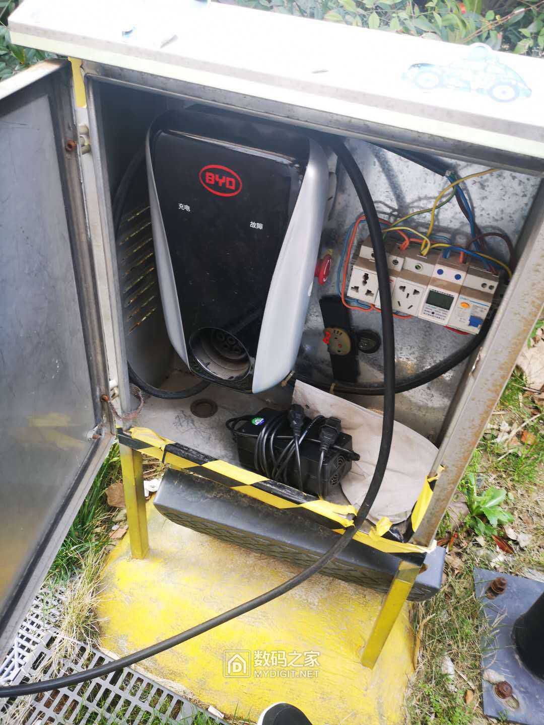 补发一个充电桩的照片 内有电表啊 和电源插座 给电驴充电 或者外接家用吸尘器使用的