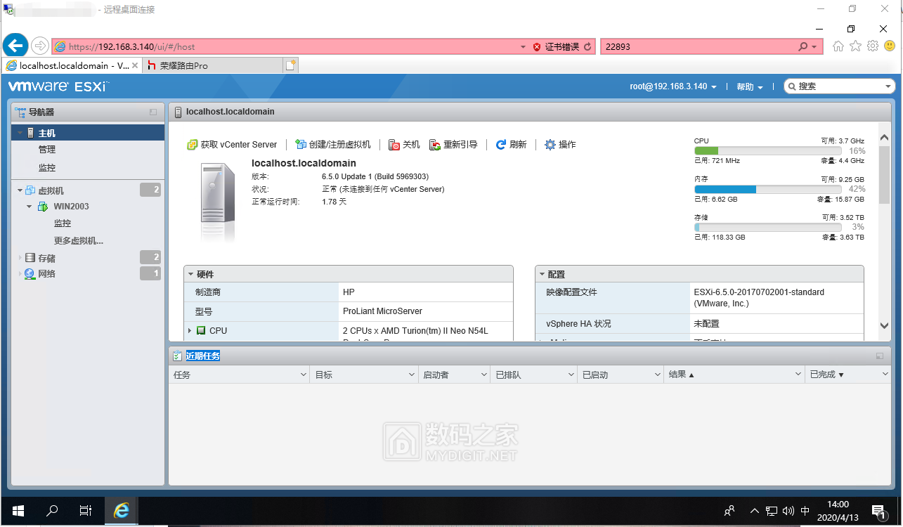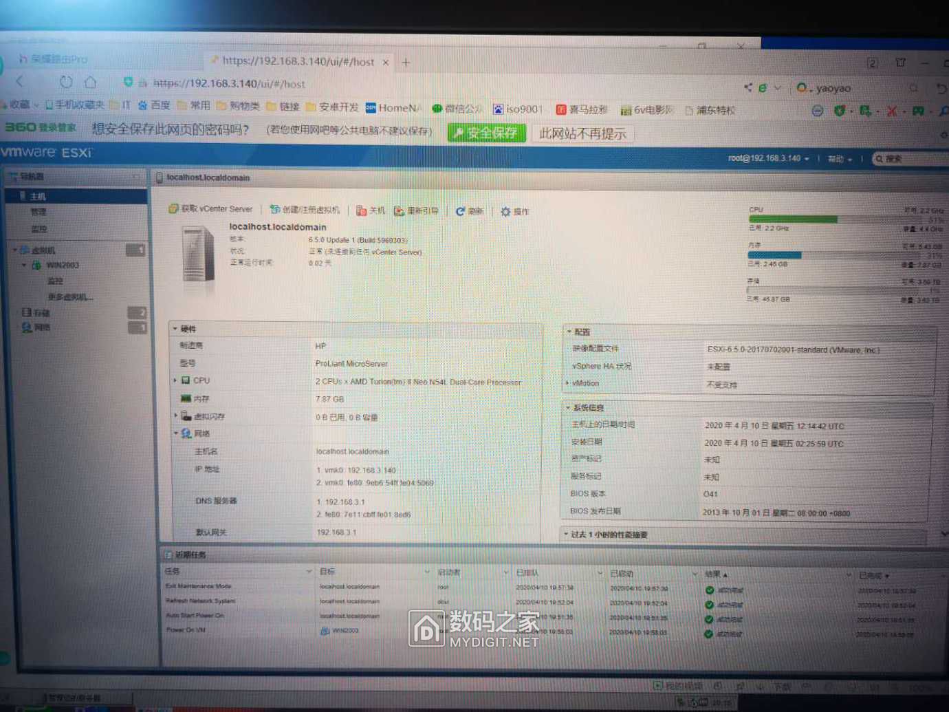 使用 N54L装ESXI 6.5 玩虚拟机 作云电脑用于远程开发使用 [