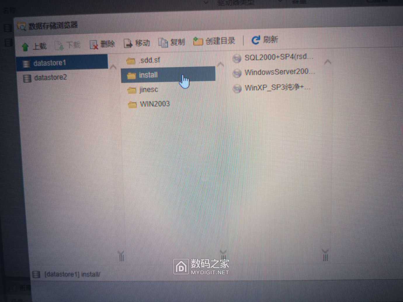 设置好存储 并且将win2003和SQL Server的ISO文件传到服务器上。