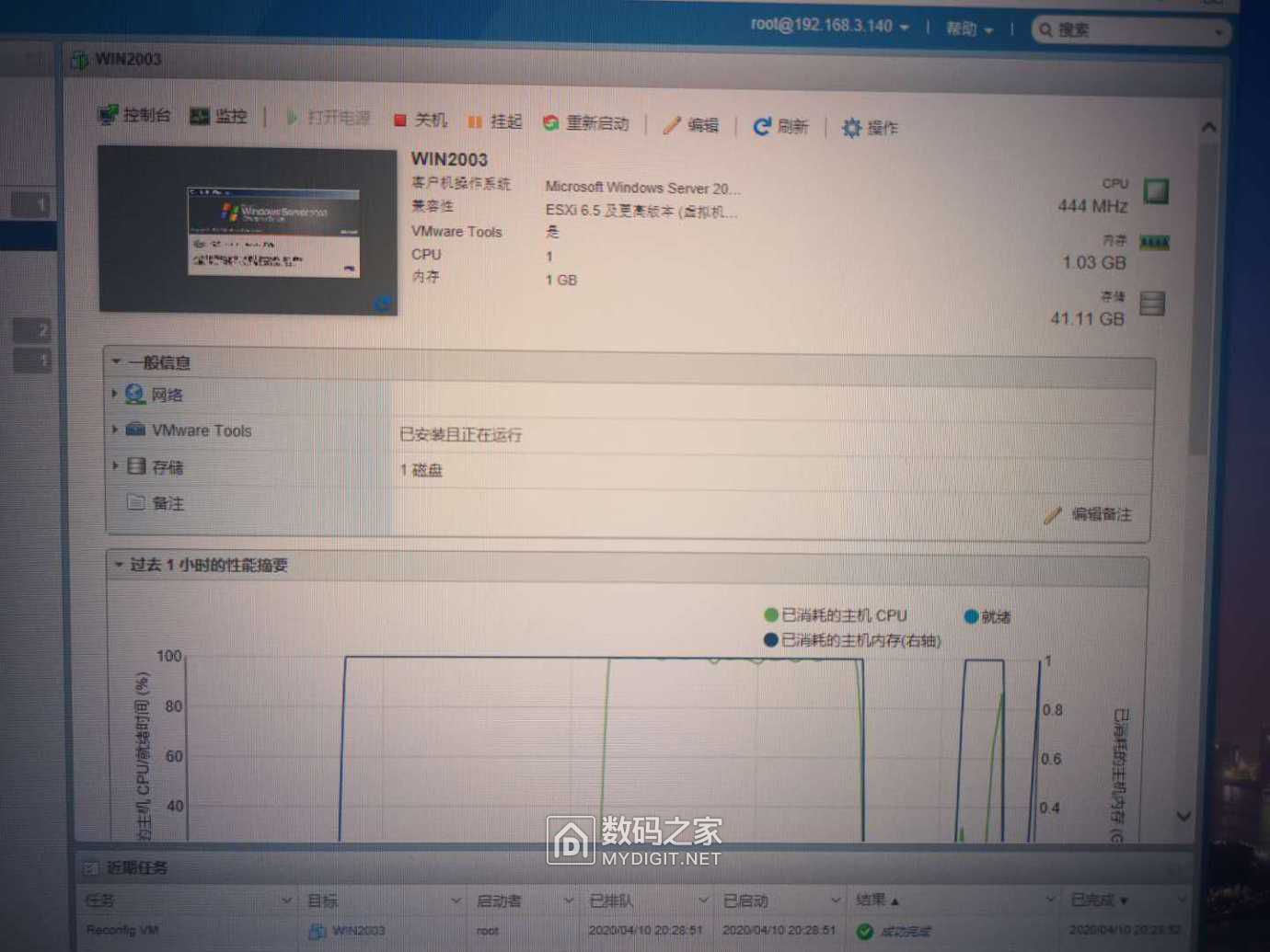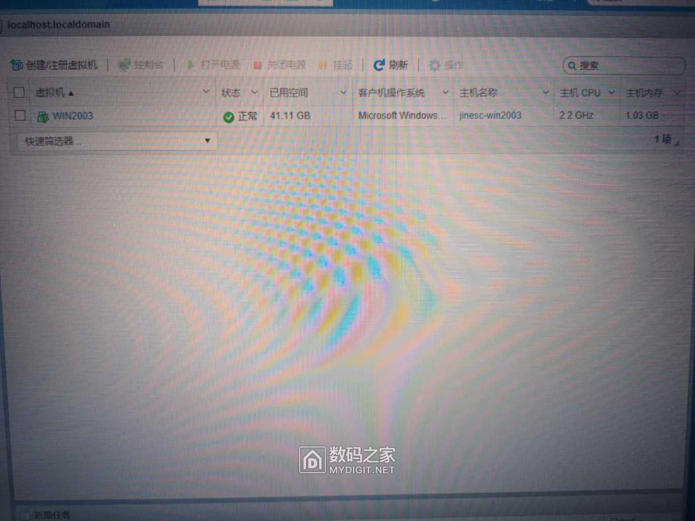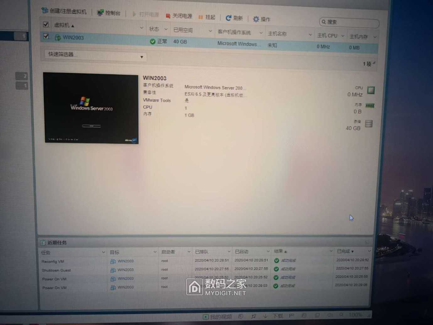 再按向导建立了个虚拟机 2003嘛 就给个1核1G内存够了。多了也浪费。我还打算折腾其他虚拟机呢。