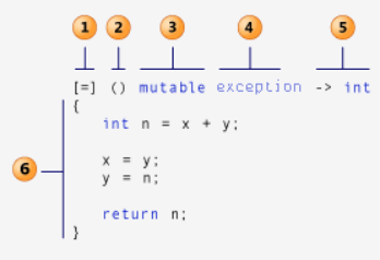 // = :把外部所有局部变量、类中所有成员以值传递方式
