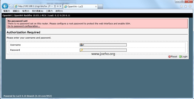 如果沒有錯誤便應該可以不用密碼進入【 OpenWRT主控台 】了