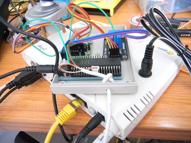 JHOME智能家居系统的 改进之一 发布时间:2012-09-10 13:01:33 · 6939 阅读 · 0 评论 文章标签: http 前几天搭建了一个智能家居管理系统的雏形, 今天做了一点改动先把路由器的12V直流电源引出来 给外部设备供电 在外壳上钻了个空 装了一个插座DB120原为ADSL猫 +路由器 刷机后 猫没用了 那个电话接口没用了 呵呵 , 改装成TTL接口了 做了个电话线头子 当TTL接口 为了好看一点做了二个接头 接在单片机上 可以看到 我给单片机加了个继电器模块通电试试效果 呵呵LED板式以前焊的 当时用18V的变压器 为了改成12v可以点亮 就将后面2排LED给短路了 主要是给摄像头做补光灯用 用继电器开控制电源的开关没有通电的样子 用网页控制起来很方便